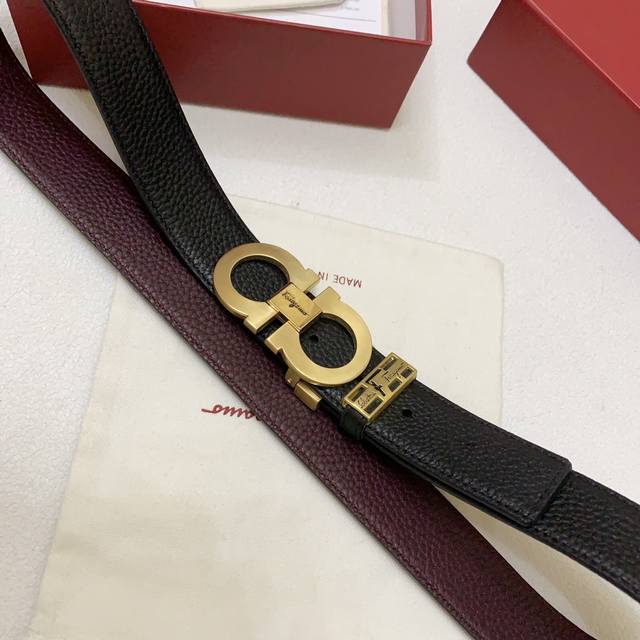 / 配正版包装代购客户专供货, 菲拉格慕同步双面带身,黑色配酒红色对版荔枝纹小牛皮,高端皮料定制,请看图片认细节, 媲美正品无压力 好货上手即知,宽度3.4Cm 高