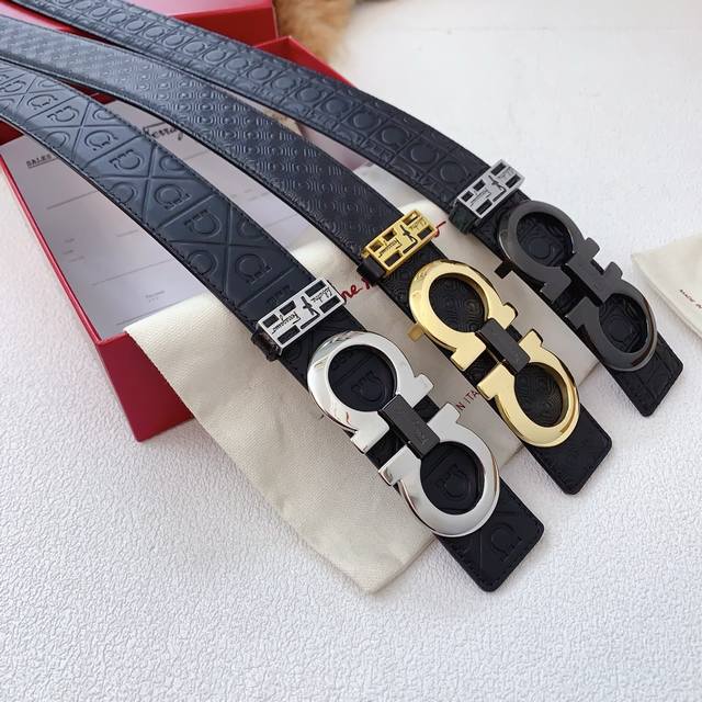 / 菲拉格慕官网同步新款更新,进口皮系列,缀以双色饰面 Gancini扣饰增添点睛韵致,新款纯钢内穿款式挂扣,打造紧身或宽松版型,3.5Cm宽度