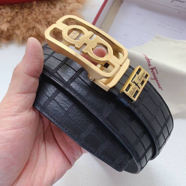 配正版包装,菲拉格慕原厂厚实饱满,精品纯钢扣,正版同步, 皮纹清晰质感舒适 版型时尚高档 宽度3.8Cm 高清实拍大图...