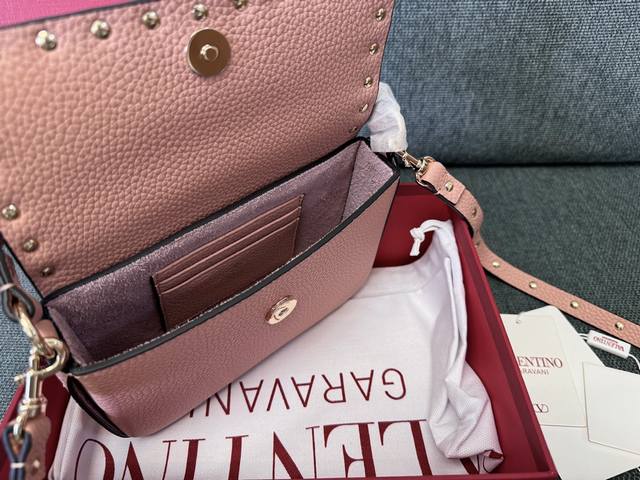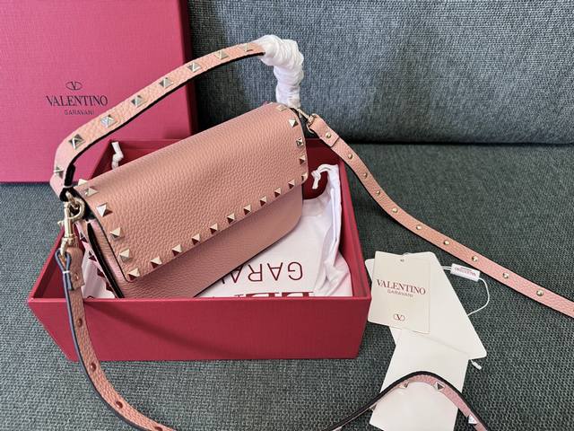 Vt新款小巧手挎包 型号:5500 尺寸:19X13X7Cm Valentino Garavani Rockstud 小号粒面小牛皮斜挎包,标志性的钩扣开合设计