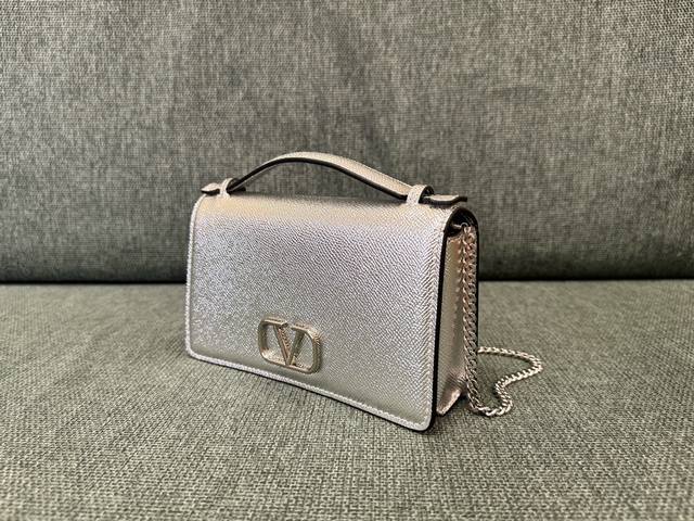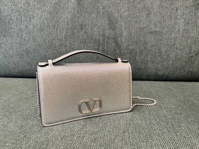 / Valentino Garavani Vring搭链发财包 Woc手掌纹牛皮精制而成,醒目标志性V字Logo金扣,可手提、可拆卸铁链、翻盖饰有插入式的磁扣、内置