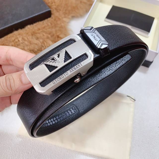 同步代购专供精品,阿玛尼高端皮系列! 猫爪纹 无缝带 高端精工细作,纯钢自动扣系列,新款皮纹意大利进口皮料精选。真空电镀五金扣件,无瑕疵打磨,厚实皮料质感超赞,手感柔软绝非普通牛皮可比,宽度3.5Cm