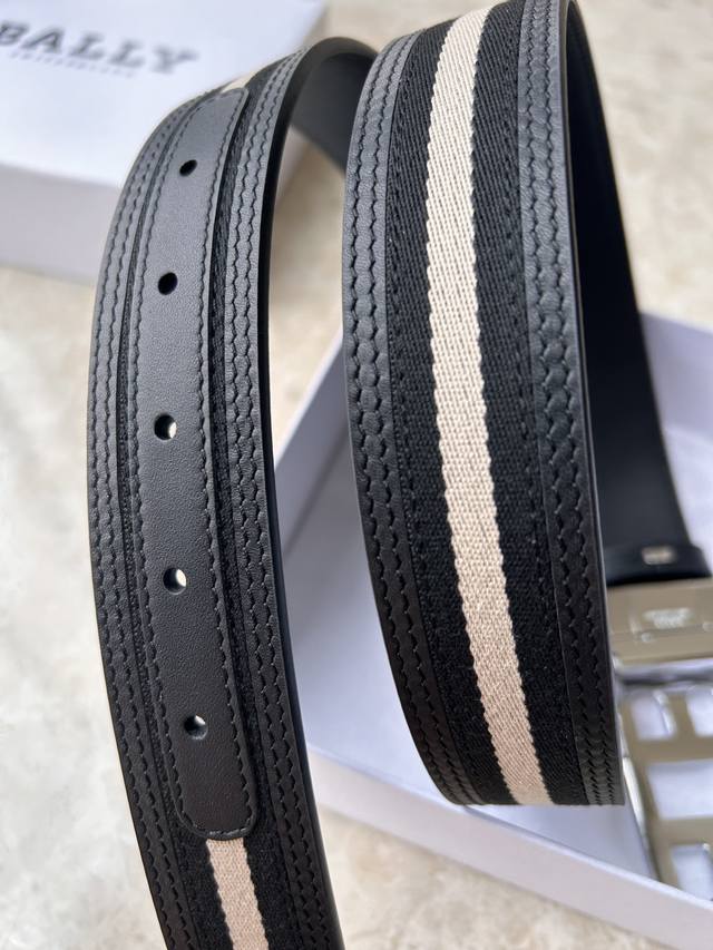 Bally -意大利进口专柜专用条纹帆布配头层皮底,搭配真空电镀花纹纯铜扣,经典款式,专柜有售,市场顶级品质,支持验货 配送全套专柜包装,宽度 3.5Cm