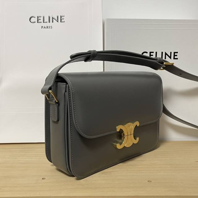 Ce Triomphe中号手搓纹小牛皮肩背包 9 X 6 X 3英寸 22 X 16.5 X 7厘米