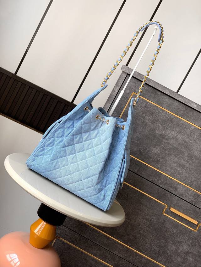 《大号尺寸带有小袋》出口产品Ohanel25P春夏牛仔新款嬉皮 亮面黑金 随性慵懒的包型当之无愧的春夏度假王者了 !知性优雅大女主典范 不仅仅是美观更是实用主义完全契合当下大多数人对包的期望值 材质:牛仔布与金色金属 !尺寸:40X30X15 Cm