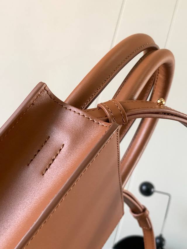 新款托特包 琴谱包原厂进口纳帕小牛皮Standard A5 Tote 手袋标准A5尺寸Tote 全新的Sleek小牛皮硬挺光滑又富有光泽经典琴谱包型方方正正的流利线条高级又精致,锋利且时髦更年轻和可爱 Tandard Tote手袋简约而引人注目拥有简洁的廓形、实用的形状和简单的顶部提手这个A5版本采用油亮牛皮革制成,正面饰有 L0Ewe 徽标压纹手提、肩背或斜挎,可拆卸可调节肩带内部插袋,可以使用肩带和个性化挂饰进行定制人字纹棉帆布衬里