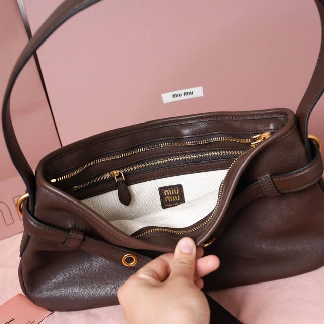 / 5Bc182,新品爆款腋下中古包,采用全新柔脂羊皮,皮质柔软高级,这款Aventure 皮革手袋灵感源自09年Miu典藏设计,结构经过调整,重新诠释独特造型,焕