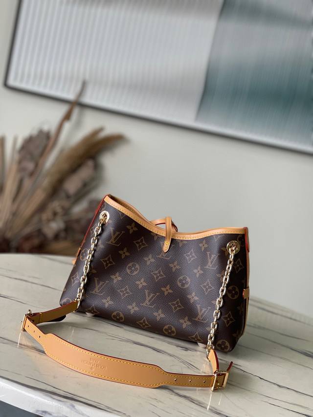/ 顶级原单 M13014 本款Carryallbb手袋取材Monogram帆布,为耀目链条点缀Monogram花卉,以潮流之姿点亮昼夜场合。皮革名牌与系带开合相得