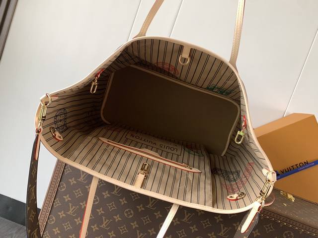 Neverfull BandoulièRe Inside Out Gm 手袋以 Monogram 帆布和缤纷压花织物演绎双面设计,再令考究包身映现金属件的细腻莹泽,为经典构型注入新季意趣。巧用侧面钩扣和可拆卸肩带,可轻松化身 Hobo 手袋或斜挎包。