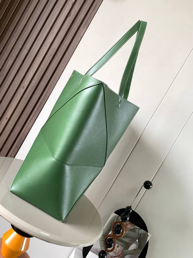 大号新款亮面牛皮革购物袋Puzzle Fold手袋大号几何图形玩出花了很久没见过这么实用又设计感满满的托特包了这款延续了Puzzle系列的几何美学以折纸包为灵感,让这只 Puzzle Fold Tote 在立体和平面随意切换上身了两个尺码给大家参考哦大号容量更友好,小号很可爱,皮质都很细腻光泽本身自重超轻,外加可以折叠太适合平时带电脑通勤,或是像我一样经常出差旅行不费力的收纳进行李箱,Puzzle Fold手袋从品牌经典手袋系列的几何线条汲取灵感运用创意巧思将其重新诠释为一款时尚的托特袋,能完