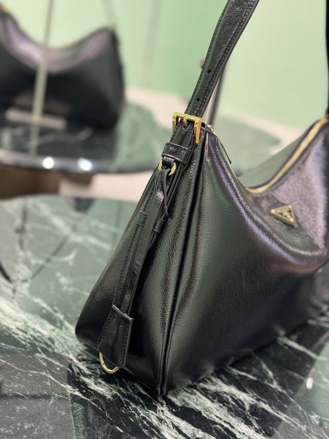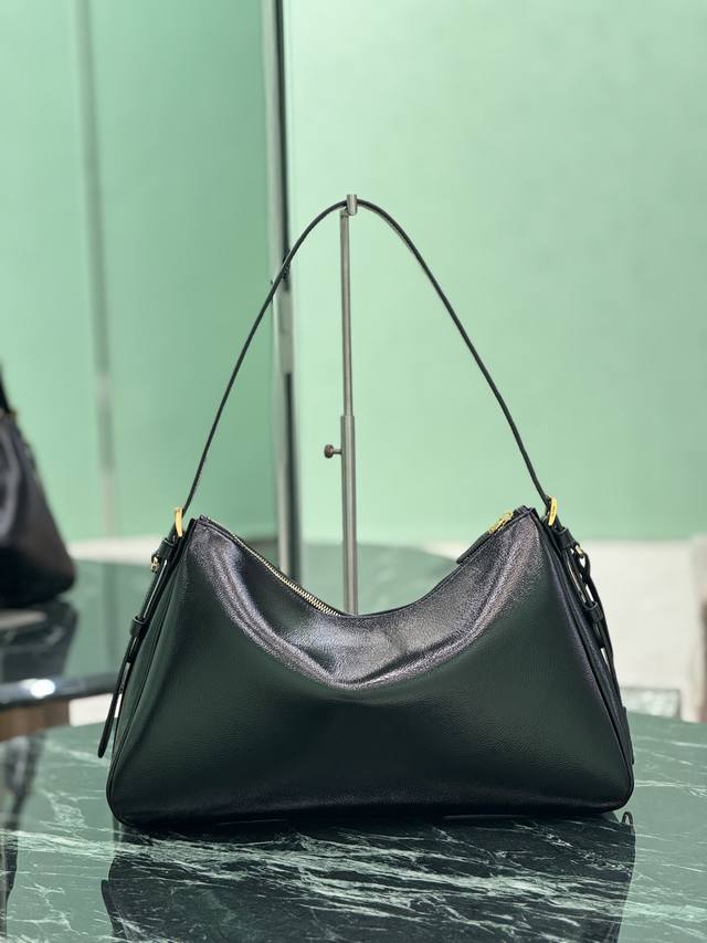 单肩包的设计灵感源自对Hobo廓形的探索,线条柔美,颇具现代感,采用皱漆皮工艺,超级百搭,背法很多,婉转的皮革轮廓结合容量大空间充足,內里配有拉链袋,一个插袋,金属五金配件点缀其间,上身效果非常时尚又大气,