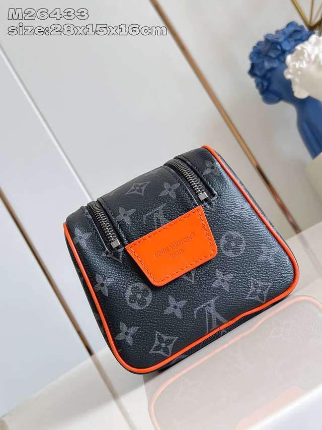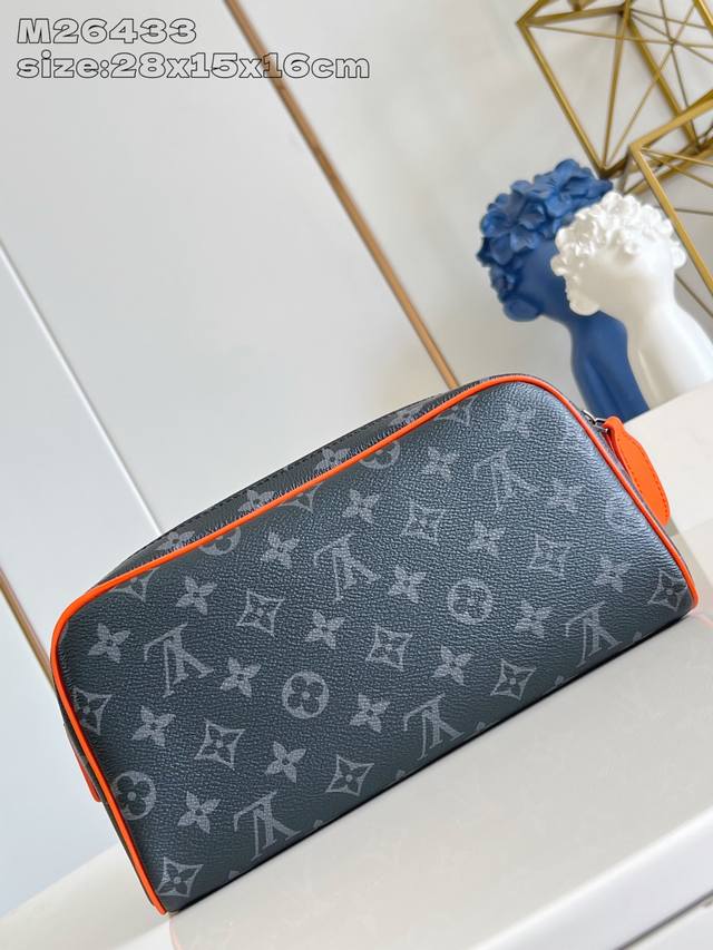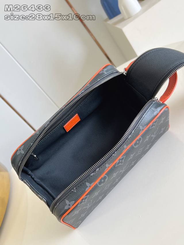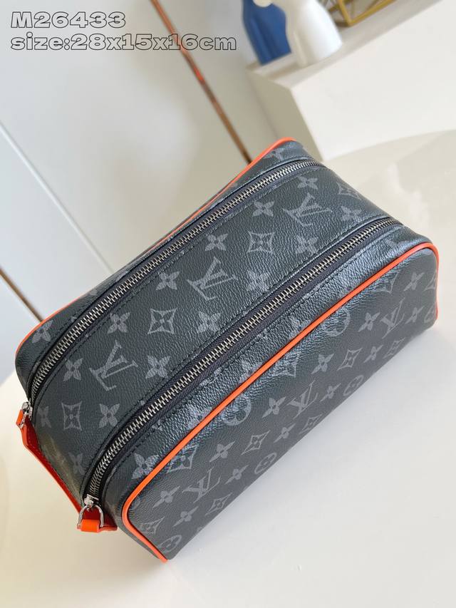 顶级原单 独家实拍 M 15246橙 本款 Dopp Kit 盥洗袋选用 Monogram Eclipse 帆布,为 Monogram 爱好者带来内敛之选。充裕