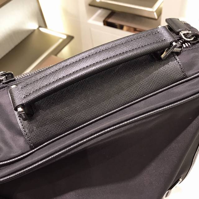 / 新款首发Pr*Da 2Ve015 男士尼龙手提包 最新款“三位一体” 可背可手提可斜挎进口降落伞布料+Saffiano十字纹牛皮正面三角搪瓷徽标 枪色五金更显稳