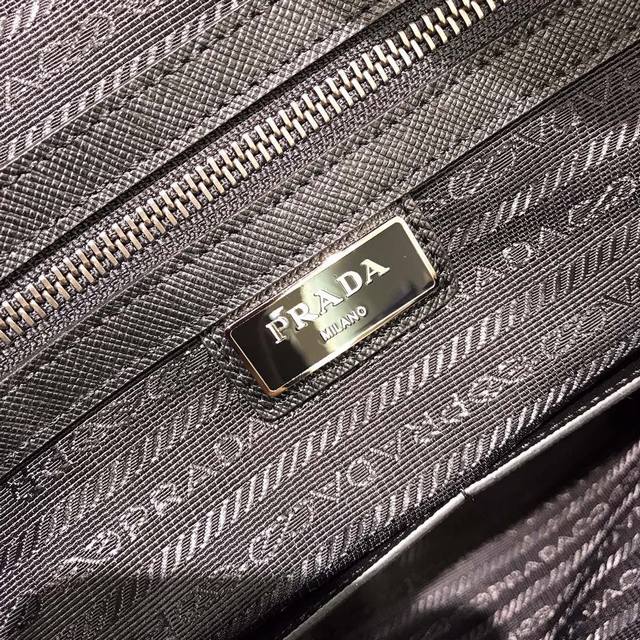 新款首发Pr*Da 2Ve015 男士尼龙手提包 最新款“三位一体” 可背可手提可斜挎进口降落伞布料+Saffiano十字纹牛皮正面三角搪瓷徽标 枪色五金更显稳重 配有可拆卸肩带 皮牌不定型的尼龙设计 时尚感十足 容量非常非常大 放笔记本有独立隔层随意搭配些休闲造型更适合手提双肩背上飞机非常方便带有208代工码 Size:40*31*11Cm 黑色 P208190135