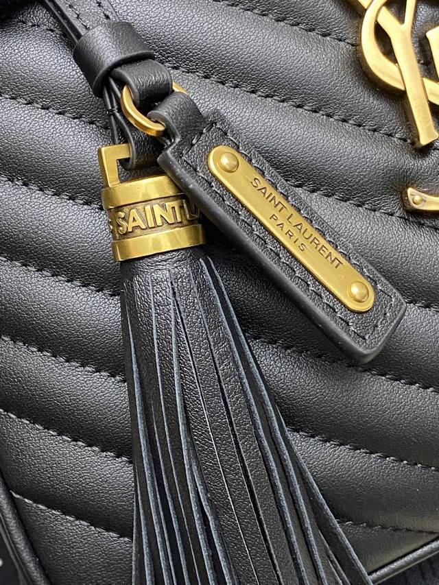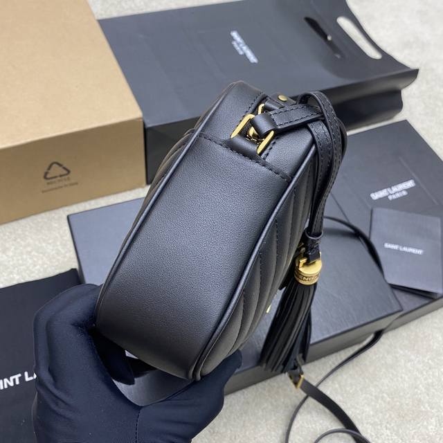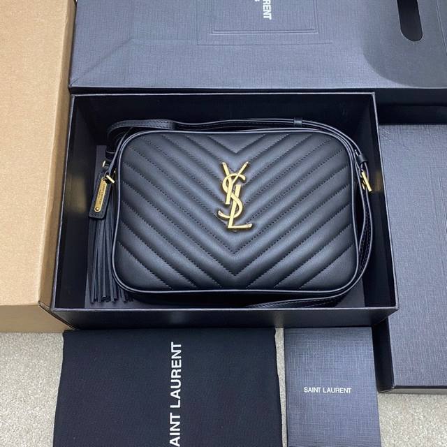 黑平纹 金全新升级版#强烈种草Y家Lou Bag爆款相机包,比老版本后面多了一个小口袋,自重超级轻巧的款式,容量惊人原厂Zp皮细腻高级,皮质手感都超级棒简约的包身有Y家经典Logo作为点缀,肩带可以调节,流苏吊坠可以取下,轻便百搭!型号:505730 520534尺寸:23X16X6Cm
