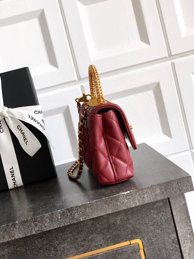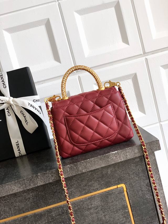 / 酒红色 14Cm Ohanel 25A 金色钻石镂空手挽!经典又时尚系列 、爆款来袭Cocohandle 经典之作 !采用了胎牛皮 !纯铜金属带钻手柄设计金光闪