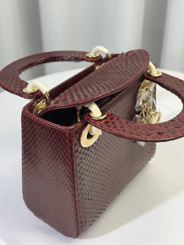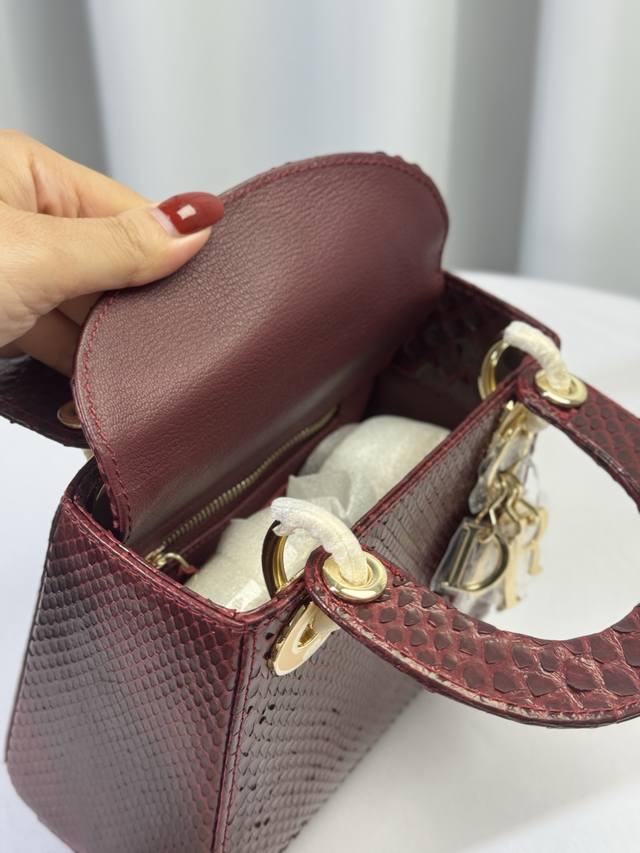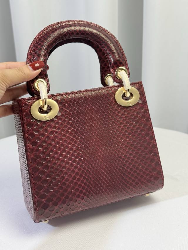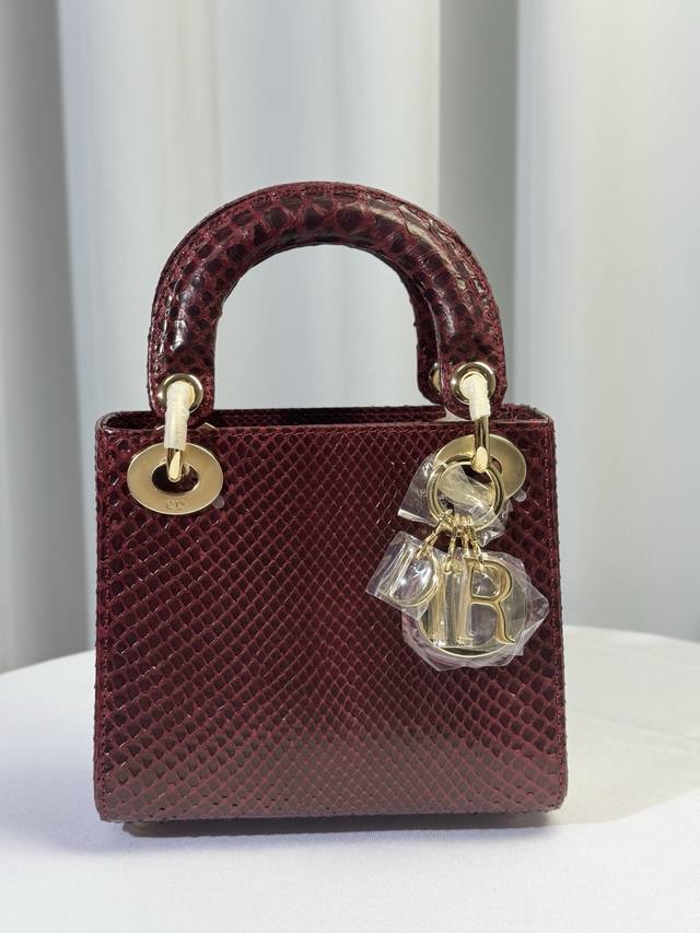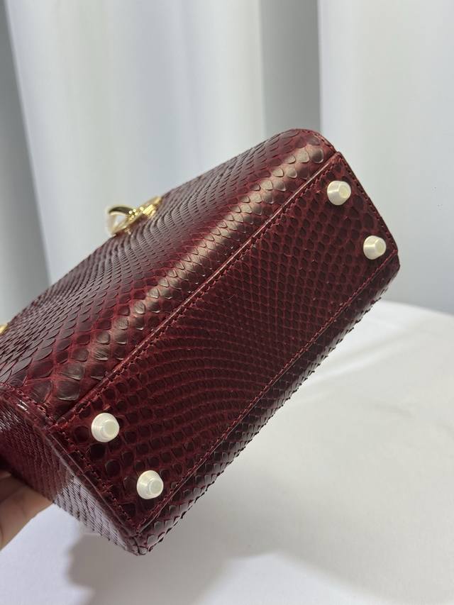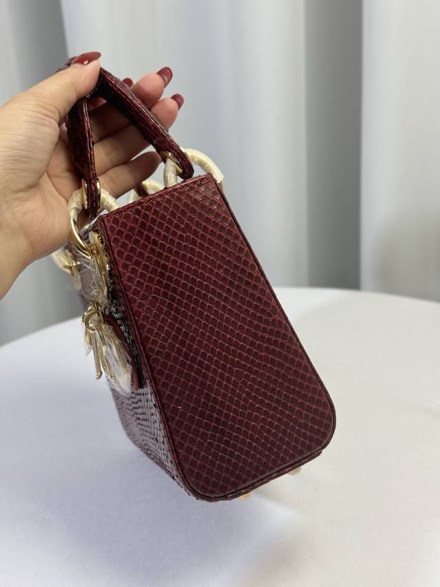 Mini 17Cm 进口蟒蛇皮 两条肩带 三格戴妃手提&单肩包