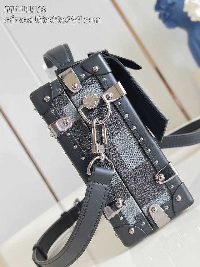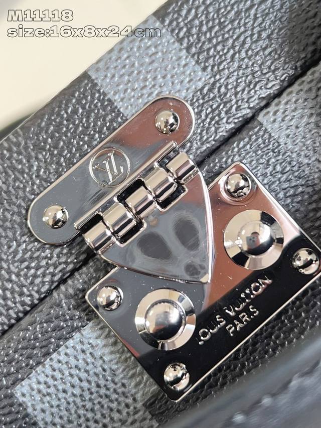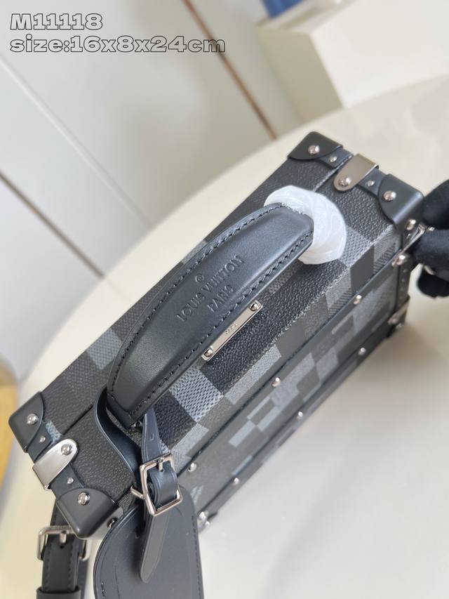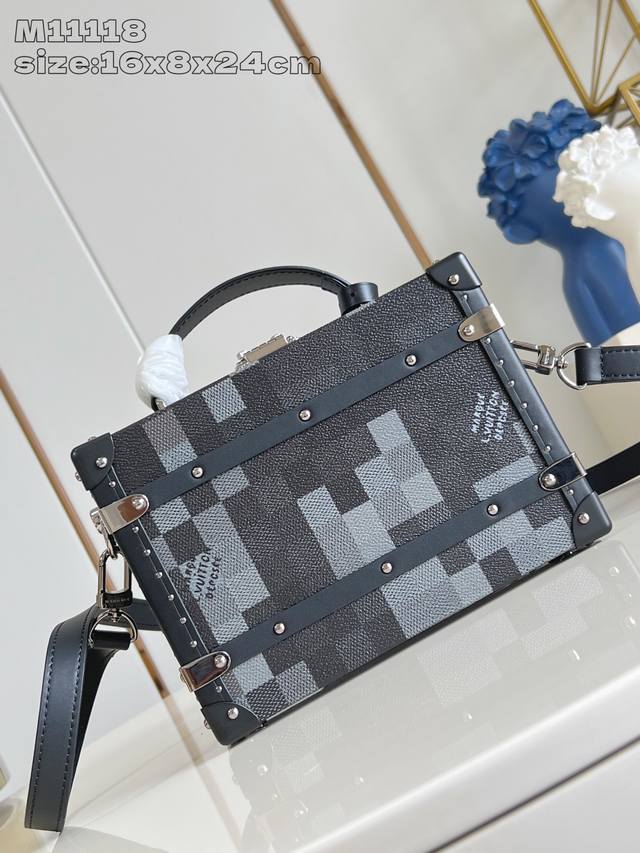 出厂价p 顶级原单 M11118黑格 N00059 本款 Handle Trunk 手袋取材 Damoflage Black 帆布,生动再现 pharrell Williams 笔下的像素风格 Damier 图案。紧凑构型融入单色设计,于考究之中释放酷感活力。顶部手柄与可拆卸并调节的皮革肩带实现灵活背携。16.5 X 8 X 24 厘米 高 X 宽 X 长度