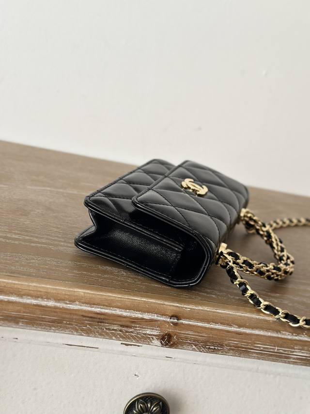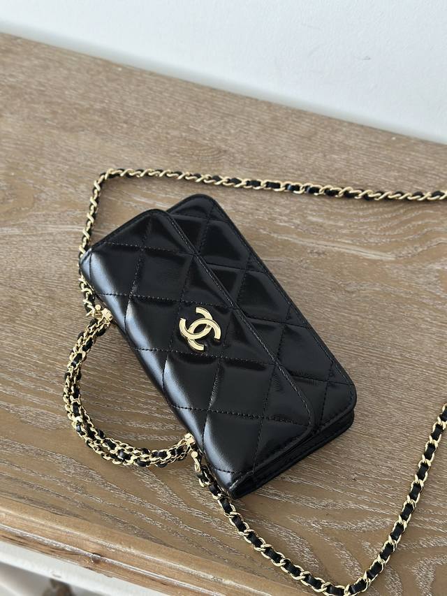 芯片版新款 24Bchane124B 编织手柄油蜡羊皮链条包 Oh天呐这是什么绝美妥妥千金感是我喜欢的亮亮皮面,手感超级软 羊皮 # 女生 # 箱包 常规包包斜挎包 尺寸:9×17×4.5Cm 编号:66026 黑色 配包装
