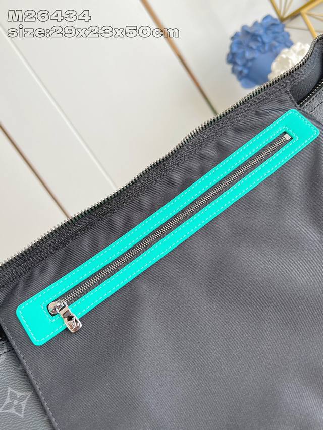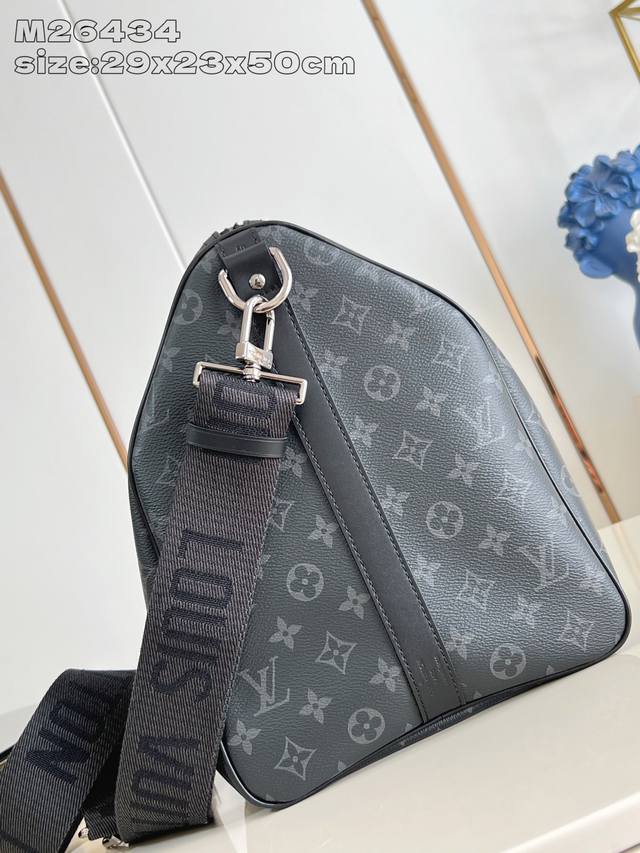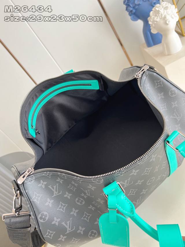 / 出厂价P 顶级原单 M26434湖青色 本款 Keepall BandoulièRe 50 旅行袋取材 Monogram Eclipse 帆布,以明丽侧带和顶部