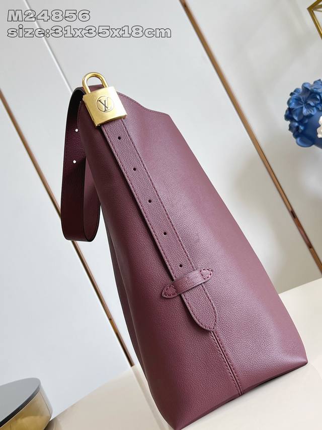 出厂价P 顶级原单 M24856紫红 M15209 本款 Low Key Hobo 中号手袋以柔软牛皮革勾勒简雅线条,搭配绒面内衬释放潮流气息,尽显品牌精湛匠艺。可调节肩带点缀经典铭纹挂锁,充裕空间可轻松收纳笔记本电脑等日常所需。31 X 35 X 18厘米 长度 X 高 X 宽
