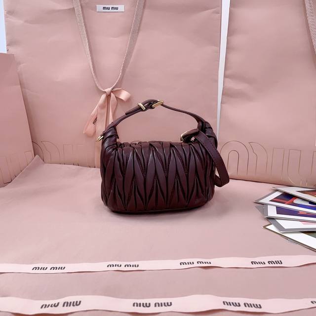 / 5Ne026,新品迷你饭盒包,经典Matelasse绣花,Miu风格的象征,设计实用且功能性强,皮质柔软高级,风格新颖独特,棉缎衬里,可拆卸延长带,可做配饰,手