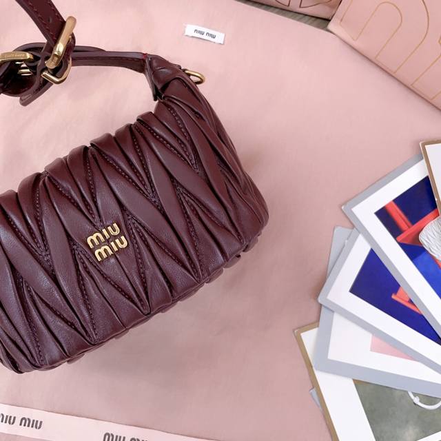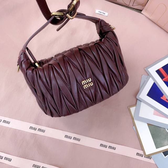 5Ne026,新品迷你饭盒包,经典Matelasse绣花,Miu风格的象征,设计实用且功能性强,皮质柔软高级,风格新颖独特,棉缎衬里,可拆卸延长带,可做配饰,手