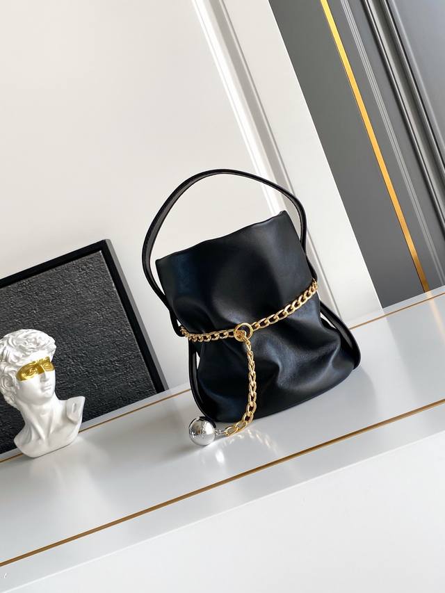 新品走秀款发财小水桶 这款发财小水桶采用进口羊皮,独特加衬内里羊皮打造设计,顶级五金,容量空间大。出街通过勤最百搭的包包,上身效果非常时尚好好看太美了,网红认定