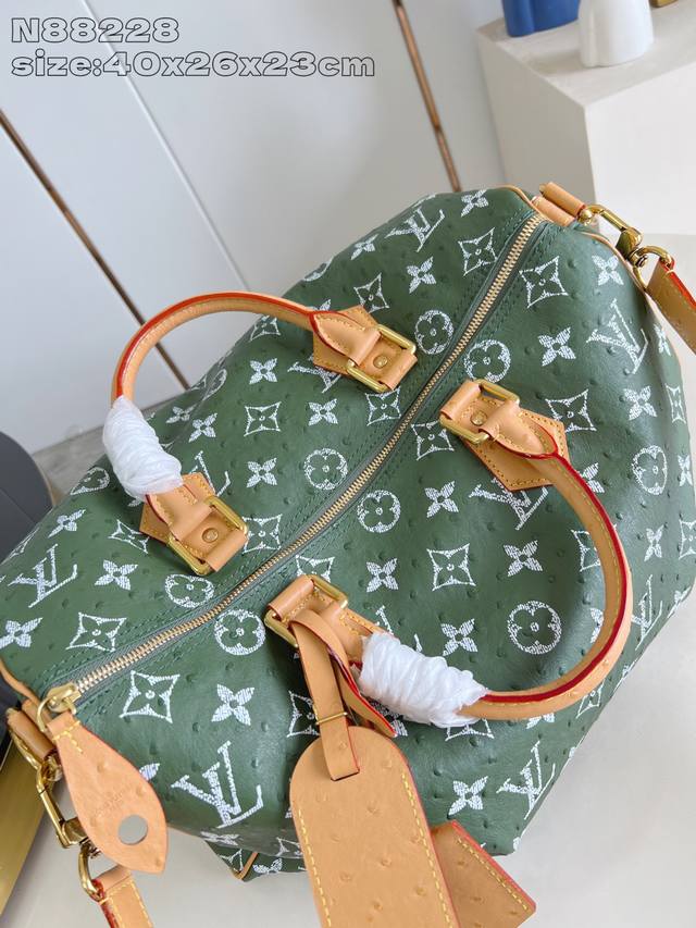 出厂价p 顶级原单 N88228鸵鸟纹墨绿色 本款 Speedy BandoulièRe 40 Monogram Leather 手袋为柔软粒面牛皮革包裹羊皮革
