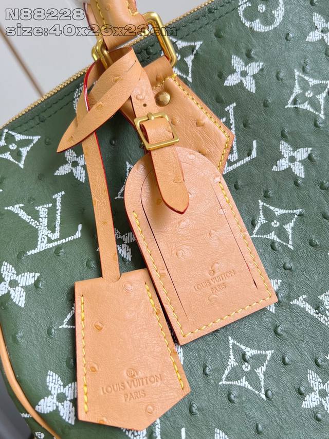 出厂价p 顶级原单 N88228鸵鸟纹墨绿色 本款 Speedy BandoulièRe 40 Monogram Leather 手袋为柔软粒面牛皮革包裹羊皮革内衬,以丝印 Monogram 图案呈现帆布印花的迷离观感,道出创意总监 pharrell Williams 的新季巧思。40 X 26 X 23厘米 长度 X 高 X 宽 DDD 温馨提示 此款太大不配包装 DDD