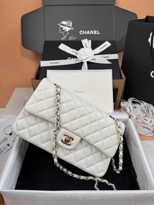 原厂皮 DDD 系列 :25.5Cm 顶级升级版 DDD 时尚与经典融为一体,永不过时 DDD 皮料:原厂进口白色细球纹小牛皮 DDD 五金:全钢浅金色五金 DDD Size:W25.5×H15.5×D6.5Cm DDD 型号:1112白色细球纹皮浅金扣 DDD 全套包装 DDD