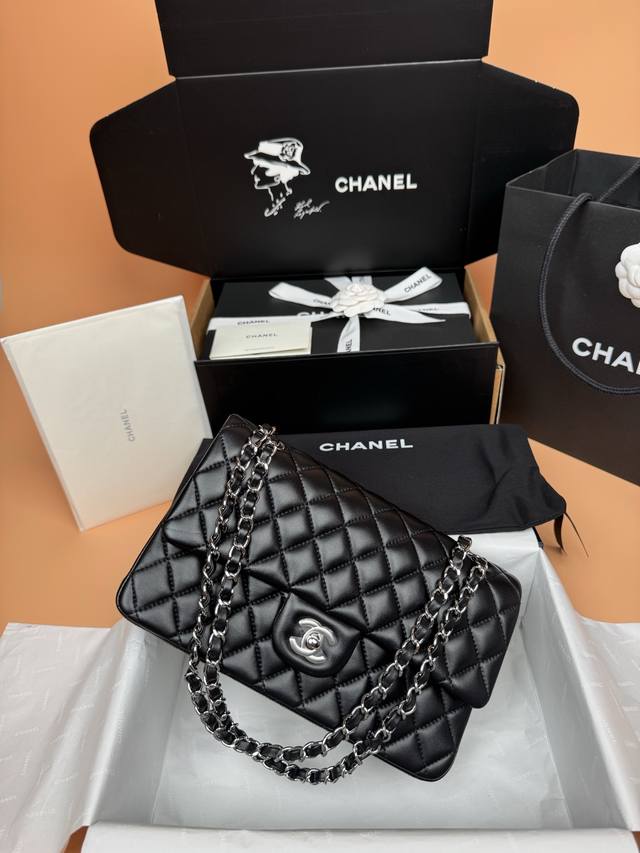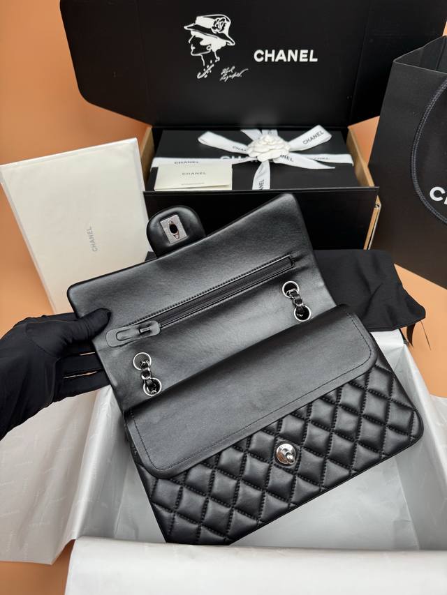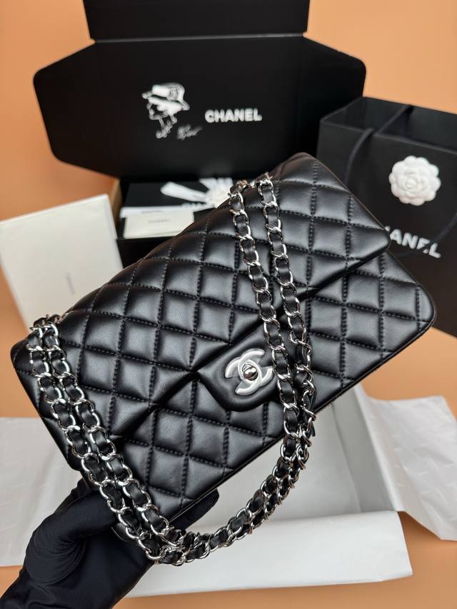 / 原厂皮 系列 :25.5Cm 顶级升级版 时尚与经典融为一体,永不过时 皮料:原厂进口黑色羊皮 五金:全钢银色 Size:W25.5×H15.5×D6.5Cm