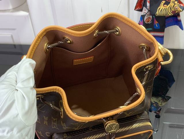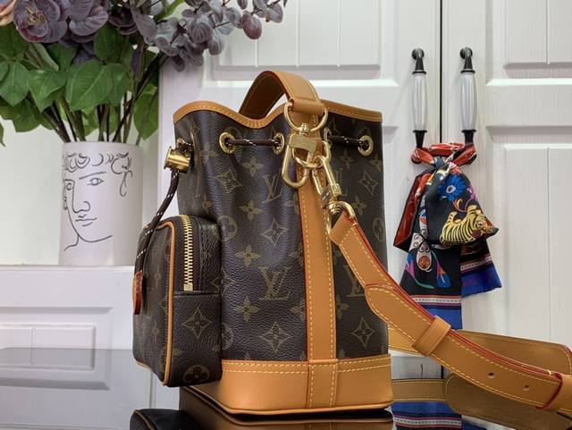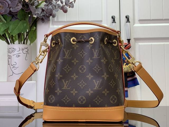 路易威登 Noé Cargo 水桶包以 Monogram 帆布构型,配以做旧感皮革饰边,传承了 1932 年为携带香槟酒瓶而设计的 Noé 水桶包。宽大前袋和精琢细节致意了路易威登的悠久历史,同时满足现代需求。顶部手柄和肩带均可拆卸,实现灵活便携。