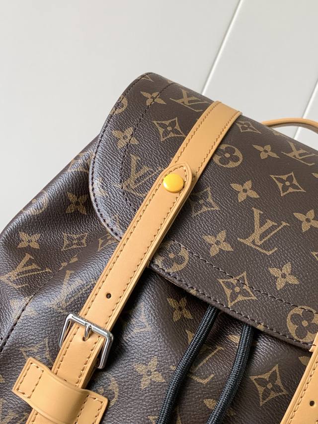 M13202 顶级原单 变码芯片163C 本款 Christopher 中号双肩包出自 Lv Colormania 系列,为 Monogram Macassar 帆布融入明丽皮革饰边,与织物内衬相映成趣。侧面口袋囊括宽敞容量,抽绳与按扣实现便捷开合。44X12.5X38Cm