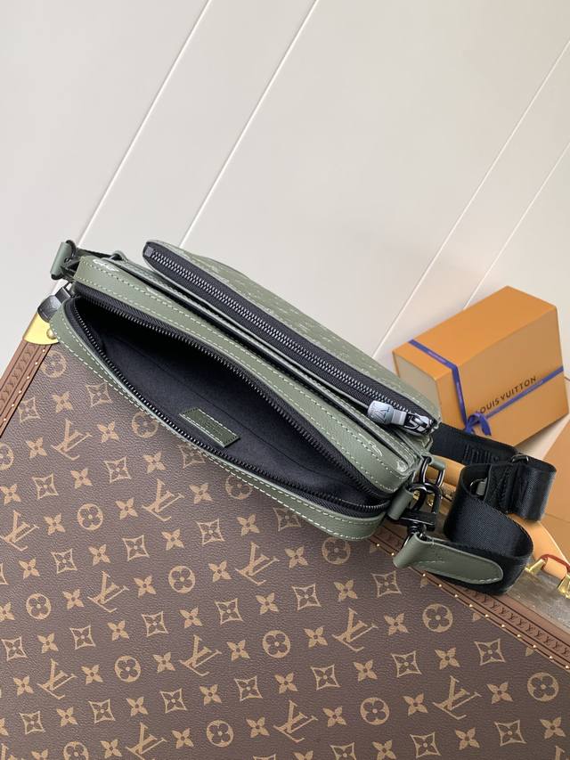 M12490 顶级原单 变码芯片 新款男包三件套邮差包系列 本款 Trio 邮差包以 Monogram Eclipse Reverse 帆布和瞩目细节塑造三合一设计。拉链前袋和肩带处的零钱包均可拆卸,与主袋共同丰富功能设计。可调节并拆卸的织物肩带点缀路易威登标识,提供舒适肩背体验。