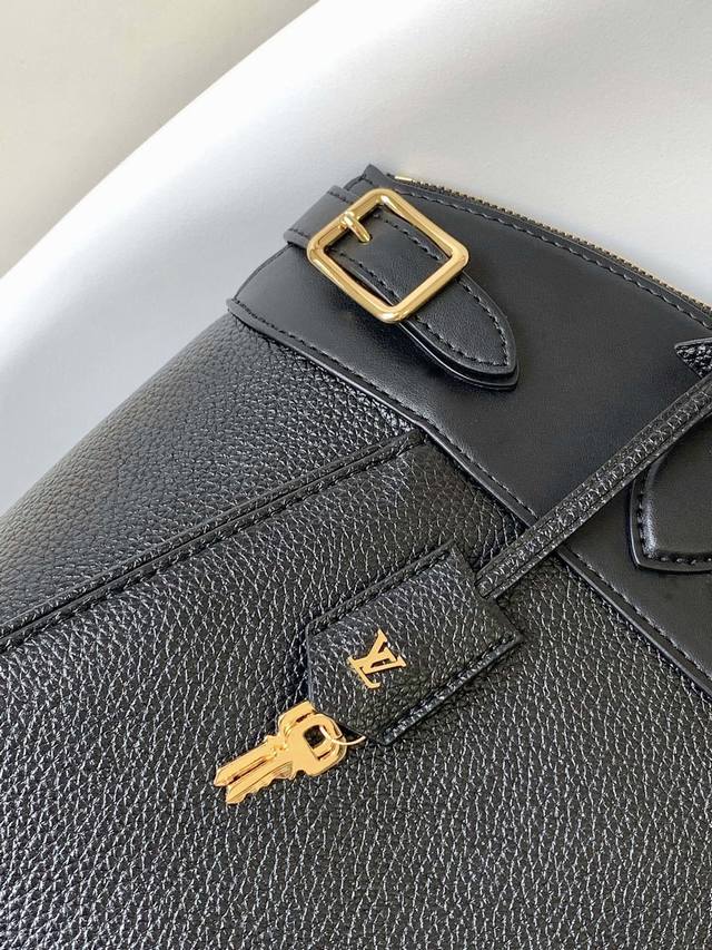 M22914黑色 M22925棕色 M23061米白 M22927灰褐 色 顶级原单 精致实用的Lock It Mm包袋采用精致的粒面Taurillon皮革和光滑的小牛皮,搭配金色饰面搭扣和五金配件。标志性的House风格包括挂锁、钥匙铃和烫印的路易威登签名。配有铰接式顶部手柄和可拆卸的表带,该手提包提供了多种携带选项。