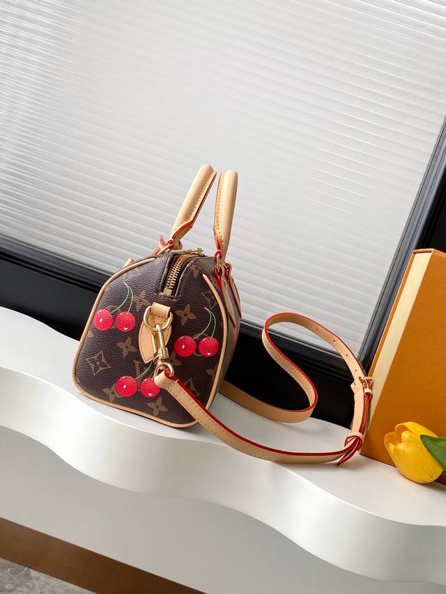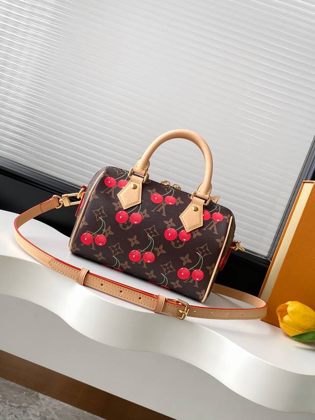 / 动态163C芯片 顶级原单加强版 M13094樱桃 本款 Speedy BandoulièRe 手袋取材经典 Monogram 涂层帆布,以路易威登 X 村上隆