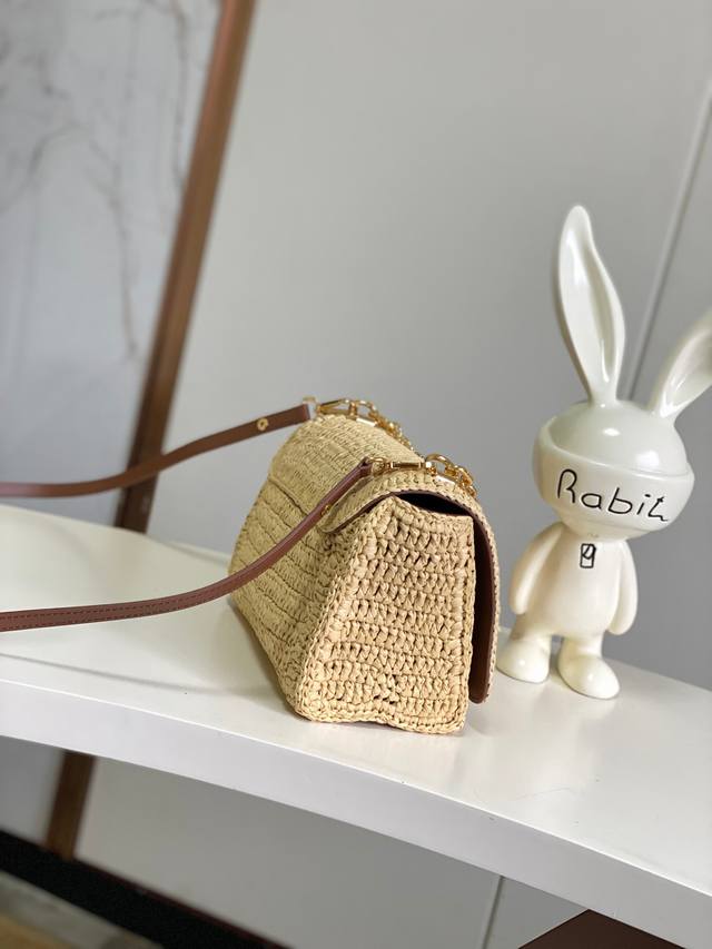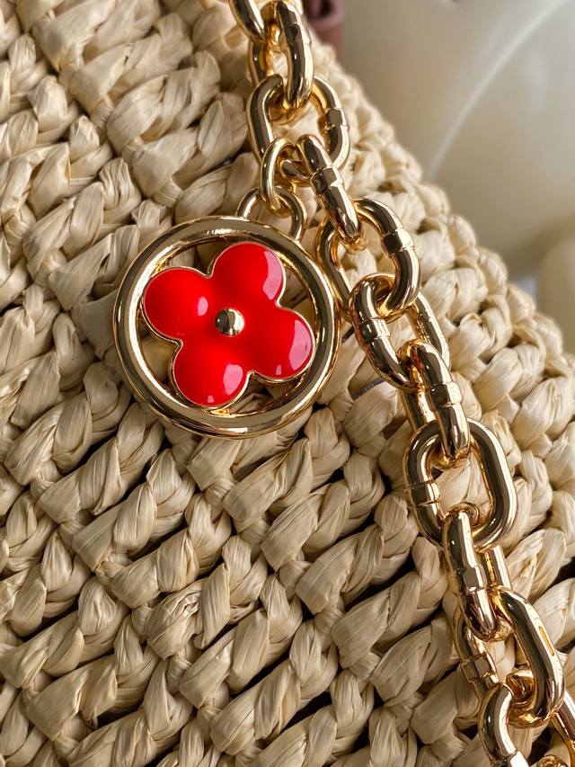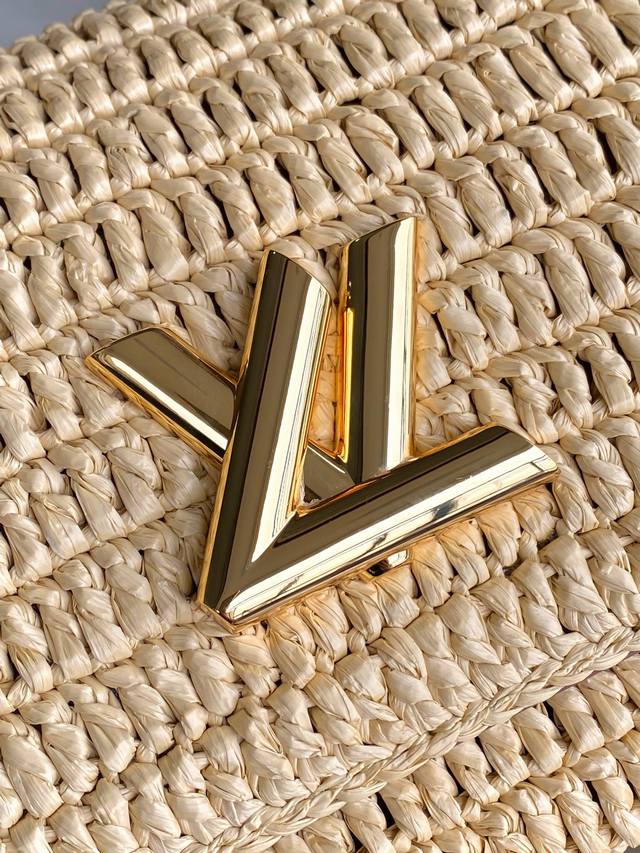 本款 Twist Slim 手袋凝聚法国蔚蓝海岸的悠闲格调,以创意笔触印证品牌精湛匠艺。拉菲草包身融入撞色皮革饰边和标志性 Lv Twist 扭锁,多重口袋便于有序收纳,可拆卸镜子再添功能考量。
