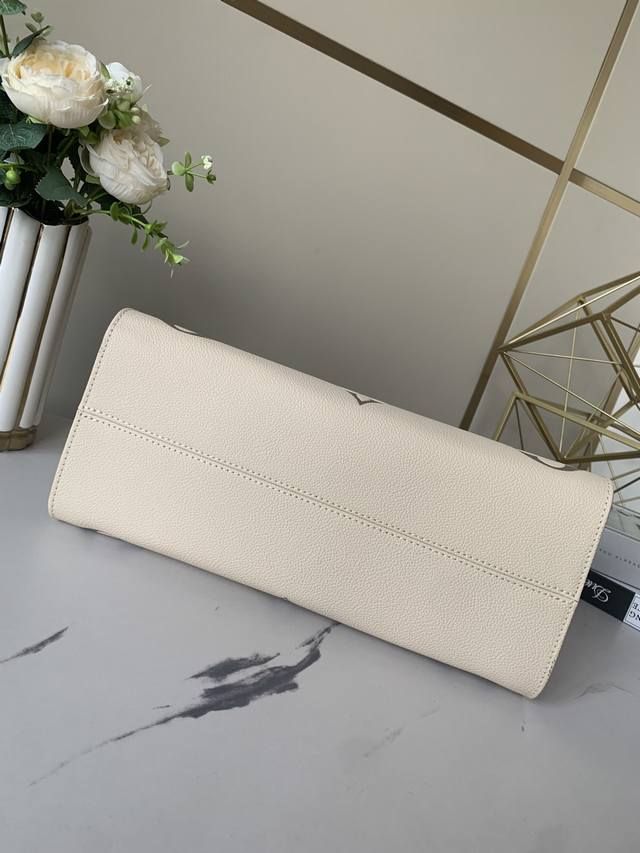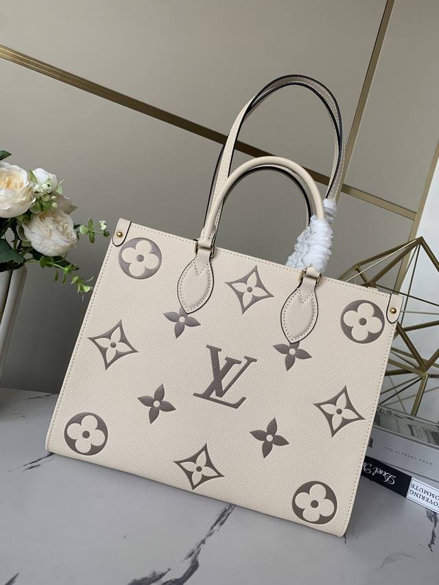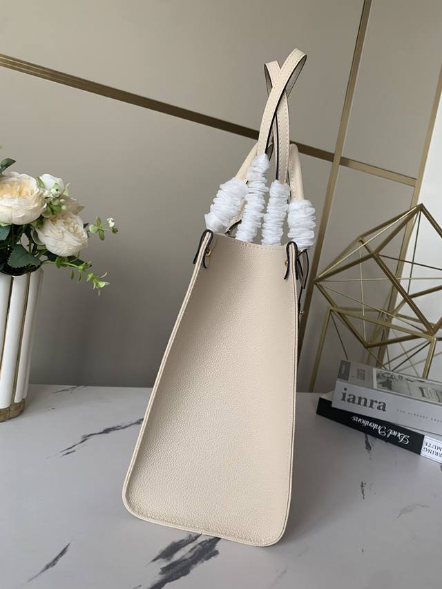 出厂价p 顶级头层 独实家拍 Louisvuittonm45493奶白Onthego 中号手袋 本款 Onthego 中号 Tote 包将 Monogram 图案先印染后压印于柔软粒面牛皮其充裕内里可容纳笔记本电脑及其他办公用品长短手柄便于手提或肩背压纹粒面牛皮粒面牛皮饰边超细纤维内衬金属件拉链内贴袋双内袋手柄:双手柄尺寸:34.0 X 26.0 X 13.0 厘米 长 X 高 X 宽