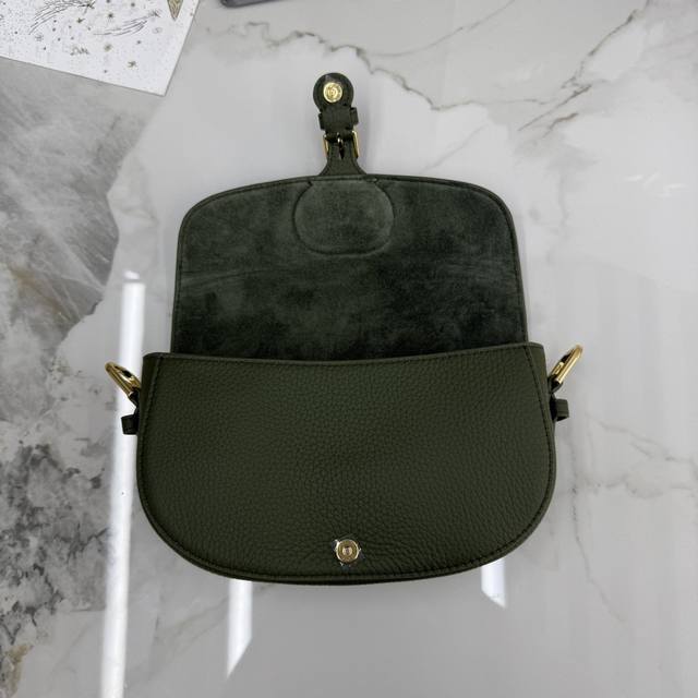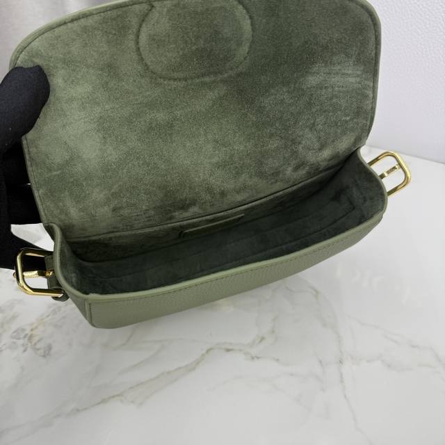 顶级原单这款 Dior Bobby East-West手袋是二零二五早春系列新品,以高雅线条和匀称比例全新演绎水饺包廓形,彰显Dior风范。采用绿色粒面牛皮革制作,饰以复古金色饰面金属细节提升格调。可拆卸、可调节的肩带可使用优雅的针扣调节,可手提或肩背,打造精致的日间或晚装造型。也可斜挎,彰显运动风范。 主体:牛皮革 里料:羊皮革,牛皮革翻盖开合 磁性扣环搭配装饰性Cd 扣内部插袋 可调节、可拆卸的皮革肩带 编号:M9335~6714 尺寸:21×12×5.1Cm