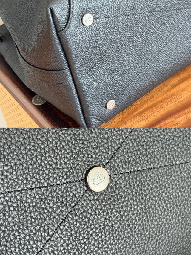 正品级 这款 Dior Normandie 手袋将实用设计与 Dior 的高订精神融为一体。采用黑色 Dior Icons 牛皮革精心制作,彰显 Dior 工坊的精湛工艺。饰以 Dior Normandie 特色孔眼提升格调,搭配可调节的 Dior 皮革带,可收起或敞开,尽显休闲风范。侧面展示个性结构设计,并带有 Dior 标志垫脚和加垫顶部手柄,精致的细节突显其高雅的魅力。内部空间宽敞,搭配人字形图案里料,设有两个插袋和一个拉链口袋。中号款式,搭配可调节、可拆卸的皮革肩带,可手提或舒适肩背。 主体:牛皮