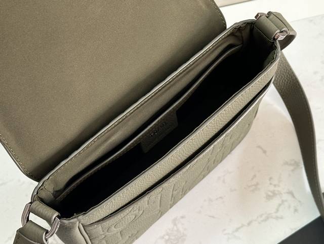 正品级 顶级原单 这款信使包是二零二四秋季男装系列新品,搭配翻盖,展示实用而经典的设计。Dior Gravity 印花效果皮革采用压花工艺将经典图案精致地呈现于黑色牛皮革之上,饰以 Dior 标志,充分彰显 Dior 工坊的精湛工艺。磁性大翻盖带有空间宽敞的拉链口袋隔层,搭配可调节带,可肩背或斜挎。 尼龙内部 主隔层搭配磁性翻盖 正面扁平隔层 正面拉链口袋 内部插袋 可调节的牛皮革肩带 正面金属覆层黄铜 Dior 标志 内含防尘袋 意大利制造 因技术局限、产品改良或生产批次等原因,网站中的信息可能存在色差