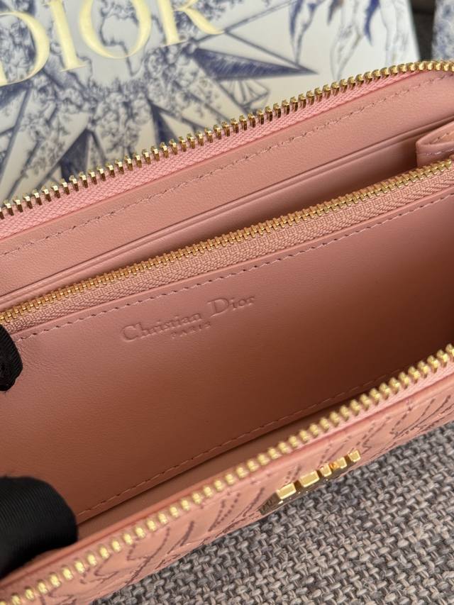 正品级 绗缝Miss Dior Freesia羊皮拉链包 编号:S 4Ubtk_M05N,拉链开合 这款 Miss Dior Freesia钱包是一款优雅实用的配饰。采用羊皮革精心制作,饰以本系列特色的绗缝Miss Dior Allover图案,灵感源自马克 博昂 Marc Bohan 的Dior设计档案,以现代风格全新演绎1960年代时尚风格。饰以复古金色饰面金属 Miss Dior 标志提升格调,设有六个卡槽。款式高雅,适合各种场合,可与该系列的其他Miss Dior 单品搭配,打造配套造型。尺寸:2