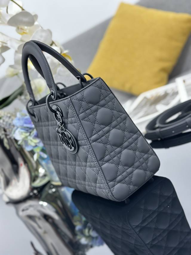 正品级 ,高版本 Lady Dior 五格磨砂藤格纹牛皮革翻盖式手袋,搭配肩背带。Ultra Matte饰面金属配饰,可调节细肩背带,可手提亦可肩背或斜挎,尺寸