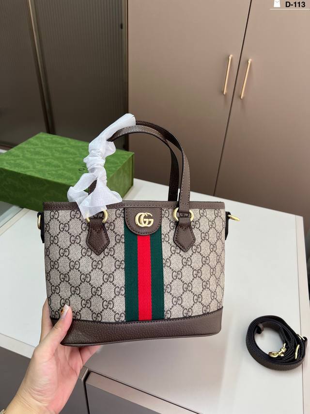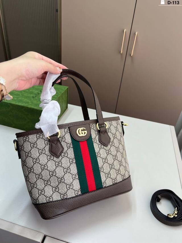 / Gucci酷奇Ophidia迷你托特包 休闲时尚 酷飒十足 小小的菜篮子 一定要出去野餐拍照 D-113尺寸22×18折叠盒