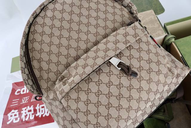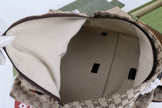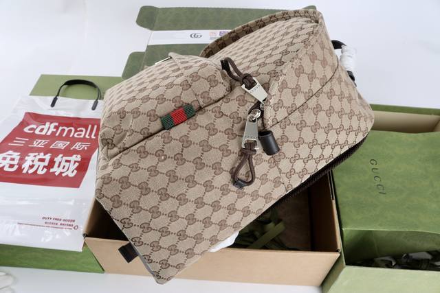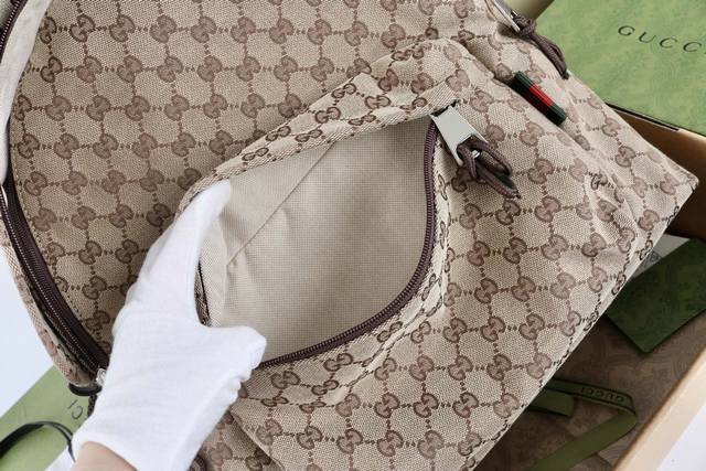 厂价 最高版本原厂皮顶级原单配专柜全套包装 饰织带中号Gg背包 简介:2025春夏系列精彩呈献手袋新作。这款男士手袋采用柔和而不失挺括的造型,质感顺滑,开合方便易用,匠心融蕴精湛工艺与实用设计。这款背包以米色和深棕色 Gg帆布匠心打造。包底的Gucci印花压纹标识精细内敛,成为单品的点睛之笔。 型号824624 材质采用专柜质感进口牛皮,帆布配皮。对版铜五金纹路清晰易见、质感细腻最高品质! 尺寸36X42X21Cm