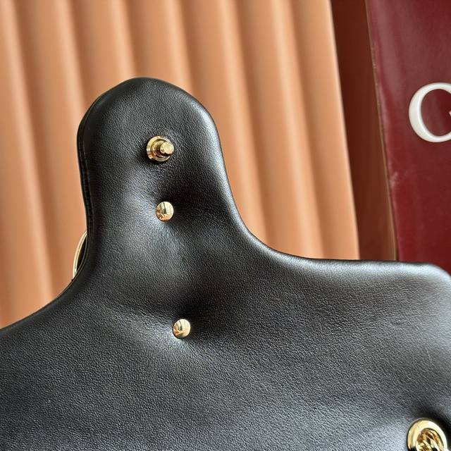 配置专柜全套包装 品牌标志性Gg Marmont系列匠心融蕴双G造型配件和切面链式包带,甄选柔软皮革缔就线条柔和的包型。简约利落的后袋令中号和大号包袋更具实用性。 黑色V型Matelassé羊皮革 浅金色调配件 古驰安可拉红粘胶纤维衬里 内部:一个拉链袋 外部:一个开口袋 滑链包带可作为肩带 35厘米高 或顶部提手 63厘米高 使用;包带长度:164厘米 弹簧扣翻盖 型号:838985。 尺寸:30.5厘米 宽 X 18厘米 高 X 8厘米 深 重量:约0.6千克 颜色:黑色全皮。 意大利创作