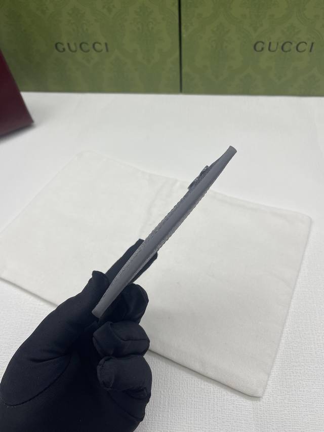 饰Gg细节卡片夹。这款卡片夹采用米色和乌木色Gg Supreme帆布精制而成,品牌典藏细节尽展高雅韵致。采用红色小巧Gg配件细节,为整体设计添注一抹亮色。这件单品设有四个卡片隔层,令整个造型魅力更显。米色和乌木色Gg Supreme帆布,黄色皮革滚边,黄铜配件,配红色陶瓷效果饰面,云纹织物衬里,Gg细节,4个卡片隔层。 型号:768248。 尺寸:11 宽 X 7Cm 高 颜色:克Pvc灰皮