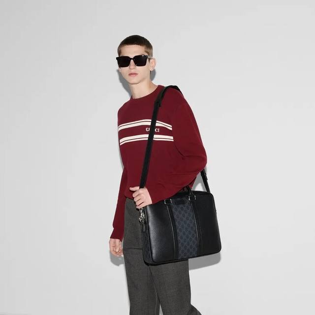 / 跑量价 简介:公文包和托特包等甄选手袋以实用细节诠释焕新风尚。这款公文包以黑色皮革和Gg Supreme帆布匠心打造,设有一个笔记本电脑隔层,并配有一条可调节肩