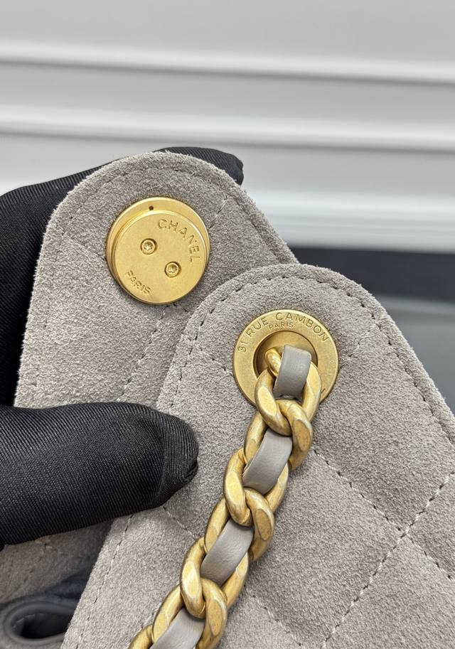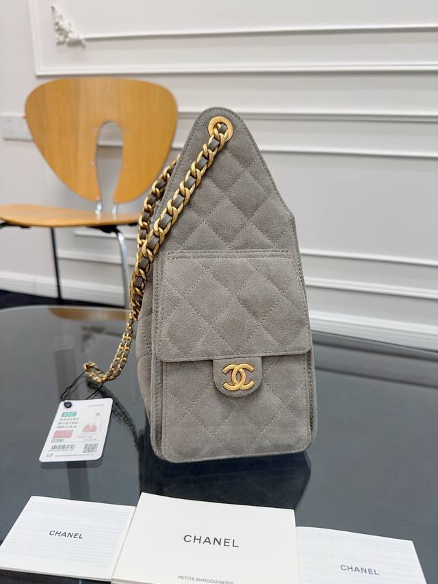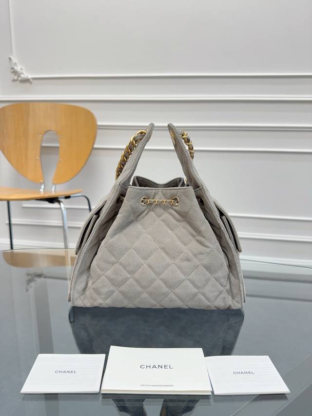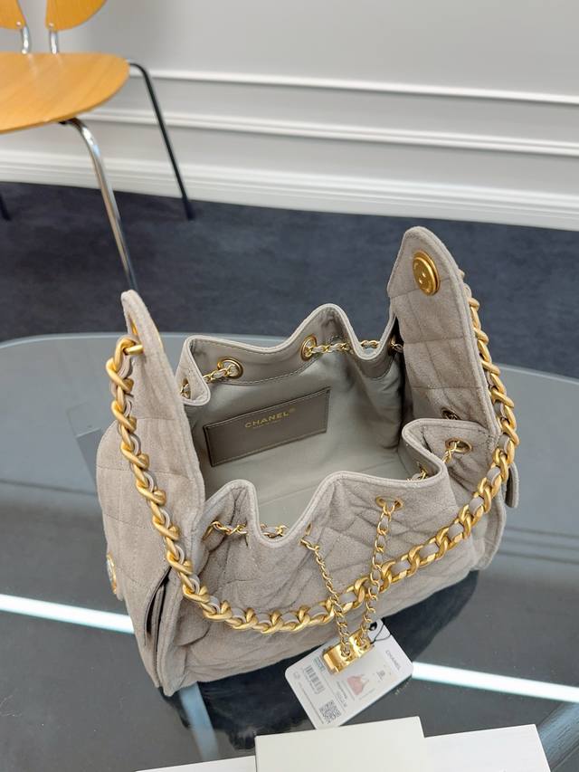 顶级货_ 法国 高端定制品 Chane1 Chanel25S 春夏Hobo抽绳水桶Mini 25Bag 复古金币纽扣抽绳水桶包+菱格纹牛皮 经典链条设计,高级感